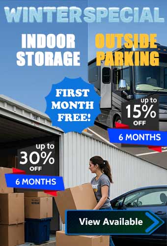 Right now we are offering huge savings with our Summer Special! All parking spaces and indoor storage units get the first month free. All parking spaces are reduced up to 25% for 6 months! All indoor storage units reduced up to 30% for 6 months! Indoor storage units get a $60 gift certificate after 6 months.