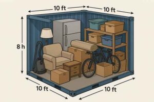 A 10x10x8 storage unit can easily hold the contents of a one to two-bedroom apartment, including sofas, beds, dining sets, and multiple boxes, making it ideal for temporary storage during relocations or home renovations. - Business Inventory and Equipment